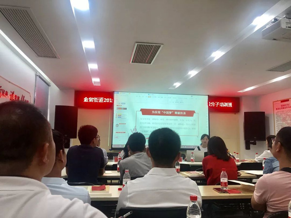 為推動主題教育高質量開展,做好發展黨員工作,保證新發展的黨員質量,保持黨的先進性和純潔性,提高黨組織的戰斗力。根據《中國共產黨發展黨員工作細則》有關規定,結合“不忘初心,牢記使命”主題教育部署和要求,2019年11月13日上午,金貿街道工委在國貿大院黨群活動中心暨新時代黨員教育實踐基地舉辦2019年“不忘初心 牢記使命”主題教育暨入黨積極分子課程培訓班。本期學員涵蓋轄區機關、社區、兩新組織、國企黨組織等入黨積極分子23人。