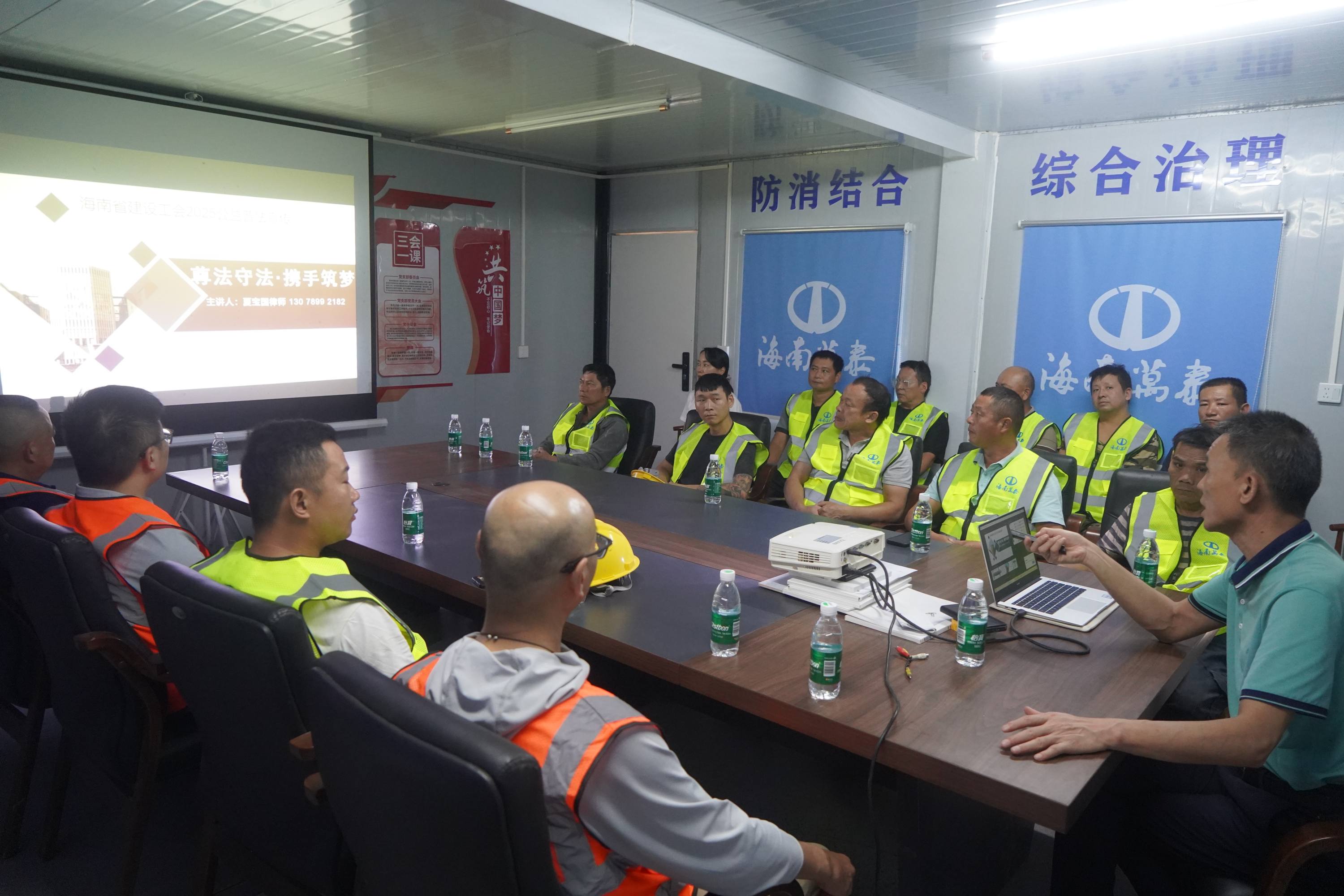 為進一步做好普法宣傳工作,增強基層職工的維權意識,10月20日下午,由海南省建設工會主辦的“送法律講座進企業進工地”活動走進海南萬泰建筑工程有限公司承建的江東新區國際消費精品產業港項目工地現場。近20名項目管理人員及工人代表參與此次普法課堂,活動旨在強化基層職工法律意識與維權能力。
